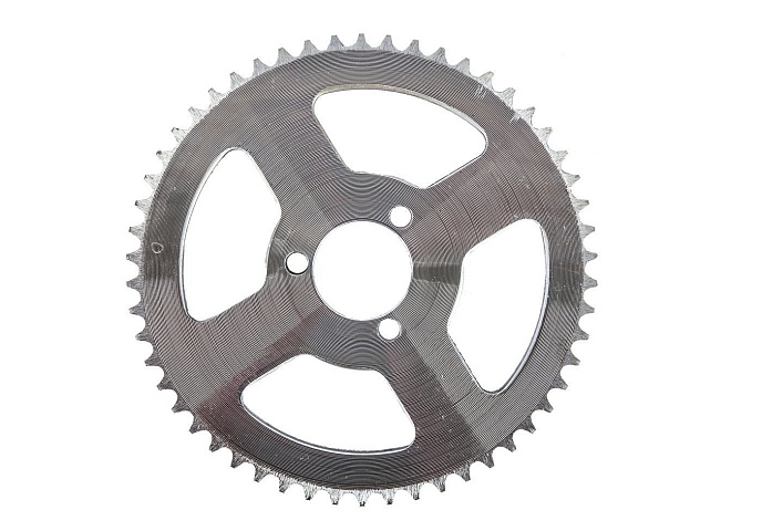 Задняя звезда цепного привода электросамоката Eltreco Rhino 1000W. [ https://www.eltreco.ru/market/catalog/elektrosamokaty/item/rhino1000w_lcd/ ] Этот самокат, оснащенный коллекторным электромотором мощностью 1000W и 36-вольтной аккумуляторной батареей, является обновленной версией модного транспортного средства, которое позволит с легкостью пронизывать «пробки» городского трафика в будни, а также активно и с удовольствием отдыхать в выходные. Ведомая звезда – один из высоконагруженных элементов цепной передачи, поэтому ее естественный износ во время эксплуатации транспортного средства является вполне ожидаемым и прогнозируемым, особенно если электросамокат используется часто и при любой погоде. Большее количество зубьев обеспечивает высокую плавность хода и увеличивает ресурс службы детали. Задняя звезда электросамоката Eltreco Rhino 1000W имеет следующие технические характеристики: - посадочный диаметр: 29мм; - расстояние между крепежными отверстиями: 22мм; - количество зубьев: 54; - используется с цепью с шагом звена 8мм.