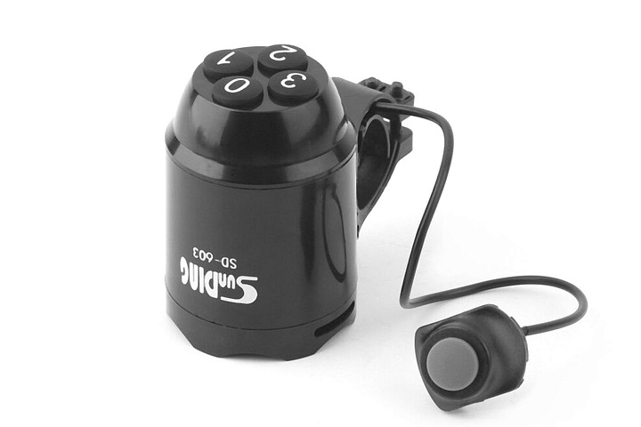 Этот аксессуар отличается вполне компактными габаритами – 60х40 мм, поэтому он не займет много места на руле и нисколько не помешает процессу управления. Черный цвет этой модели делает ее универсальной – подходящей к байку любого цветового тона. В целом, эта модель представляет собой удачное сочетание электрозвонка и электросигнализации, которое не ударит по карману райдера, но защитит от неприятностей с велосипедом. Питание осуществляется от 4 батарей LR44.
